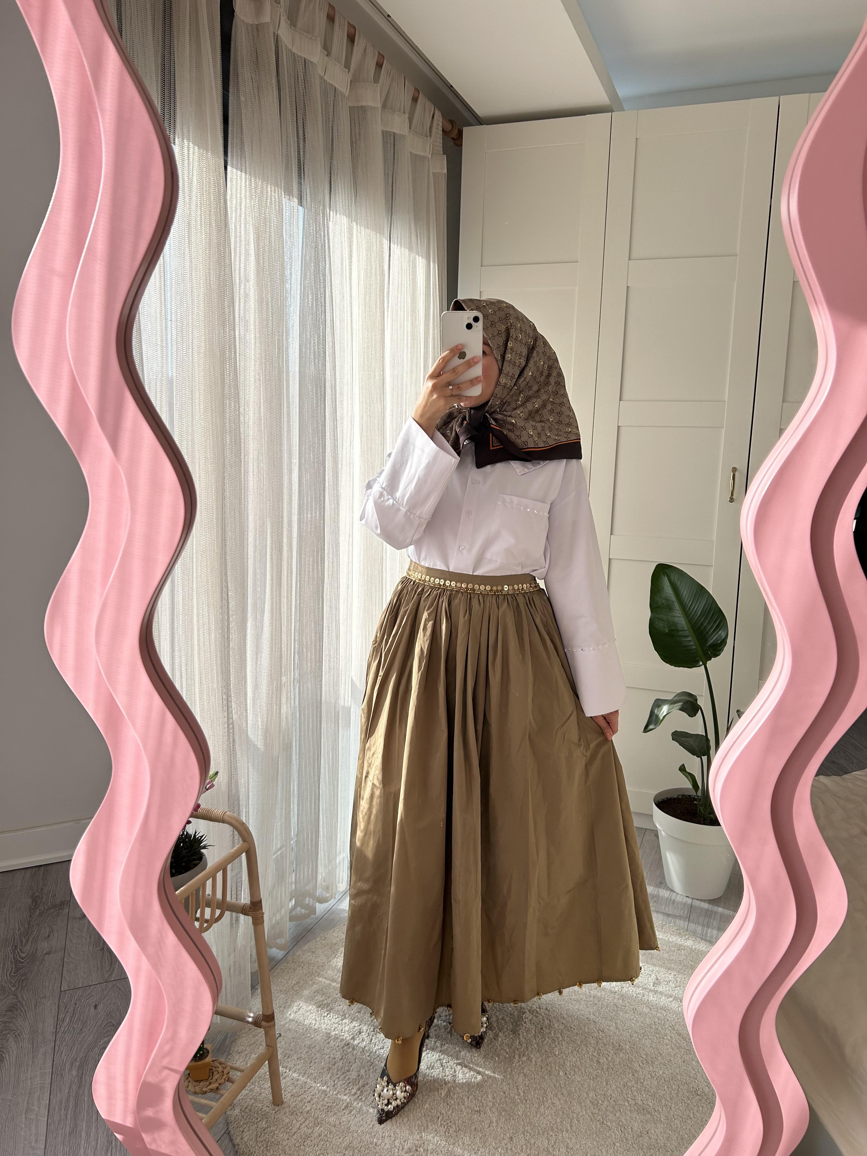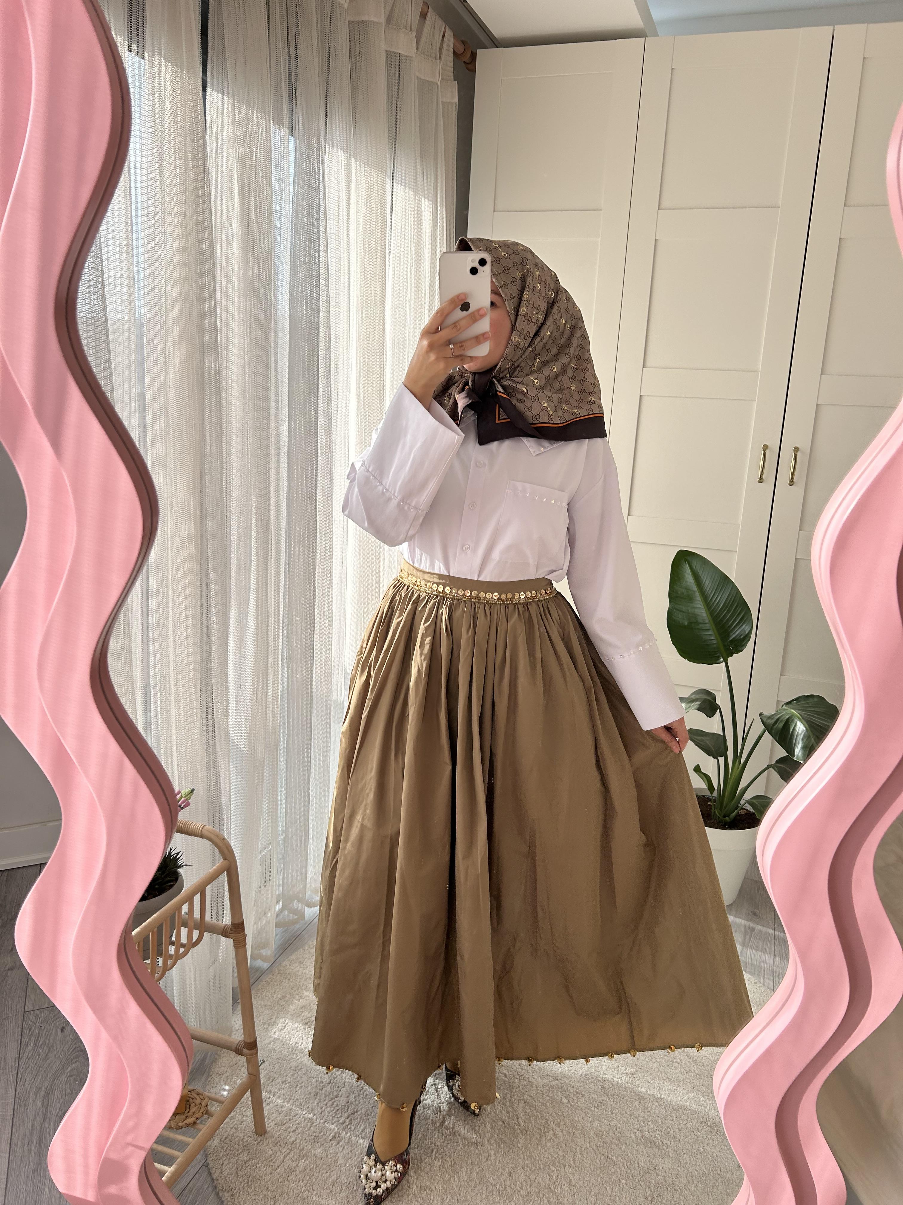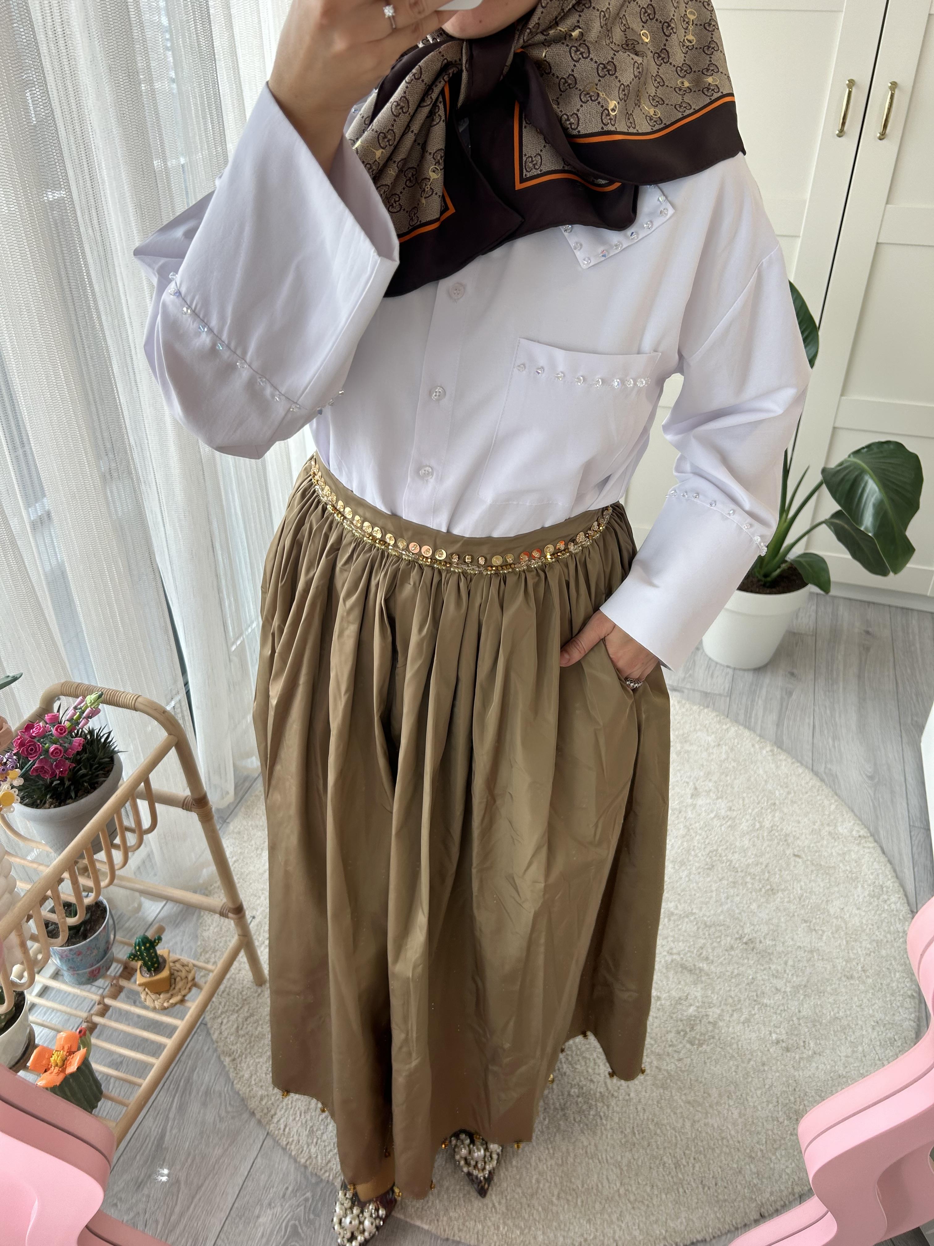 İşlemeli tafta etek standart Beden