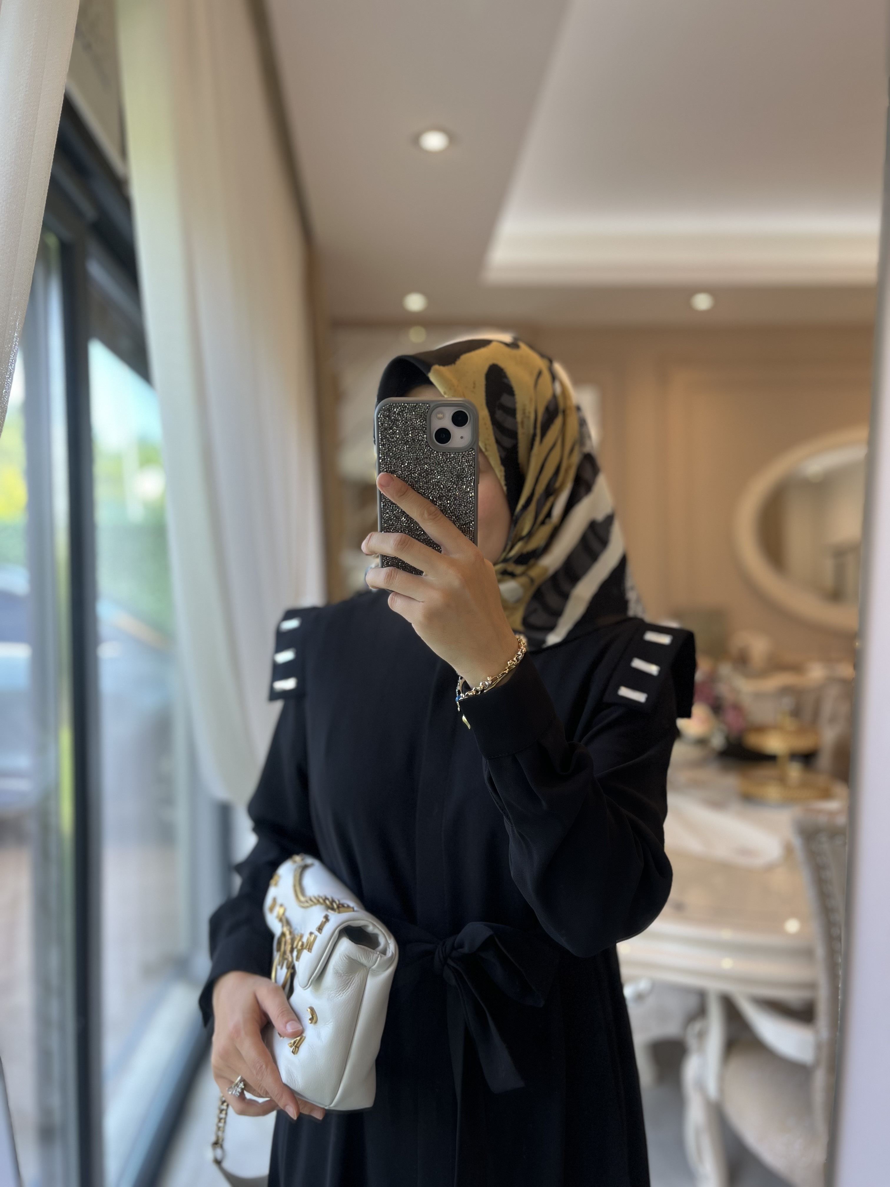 omuzları taş işlemeli