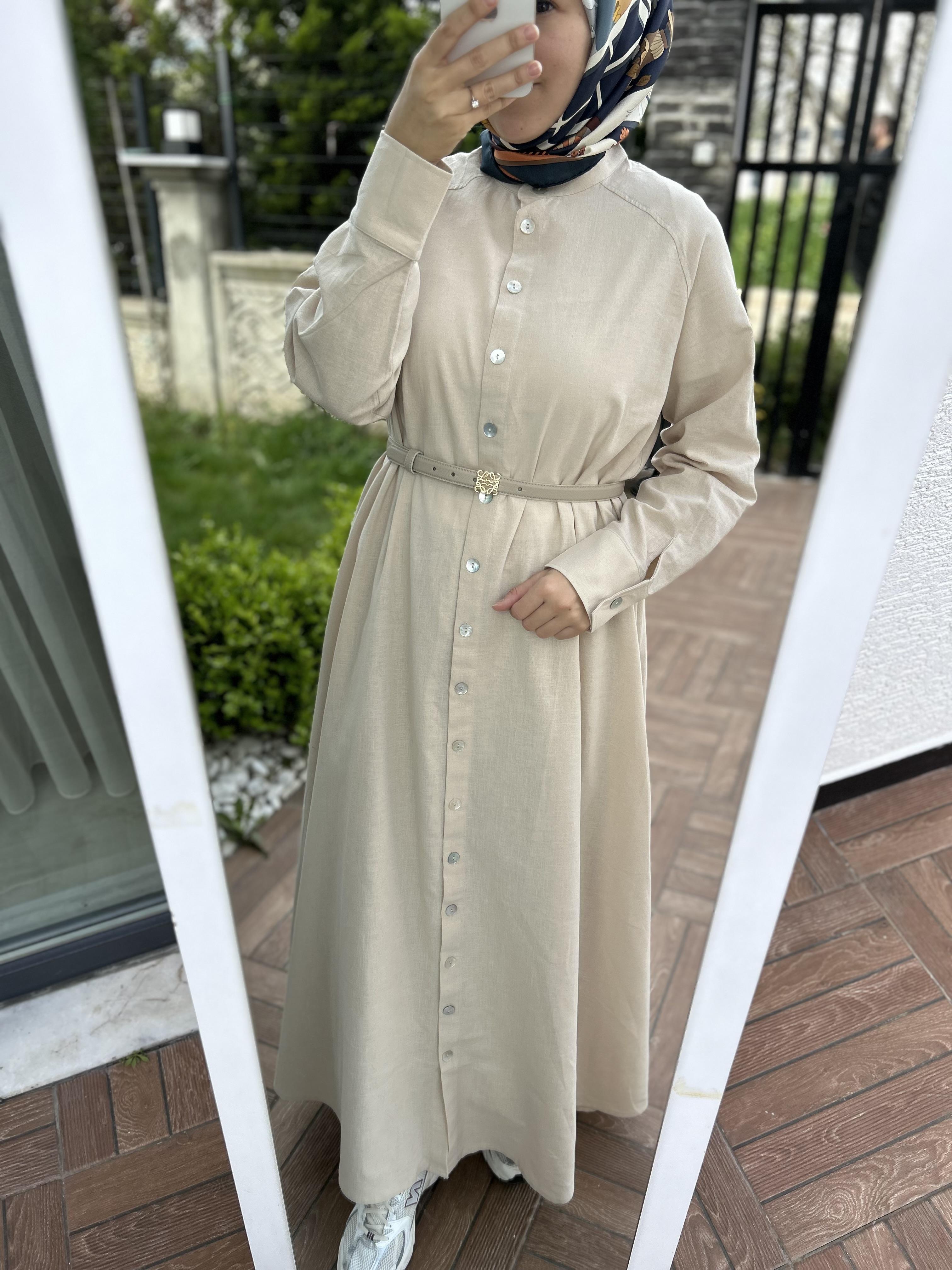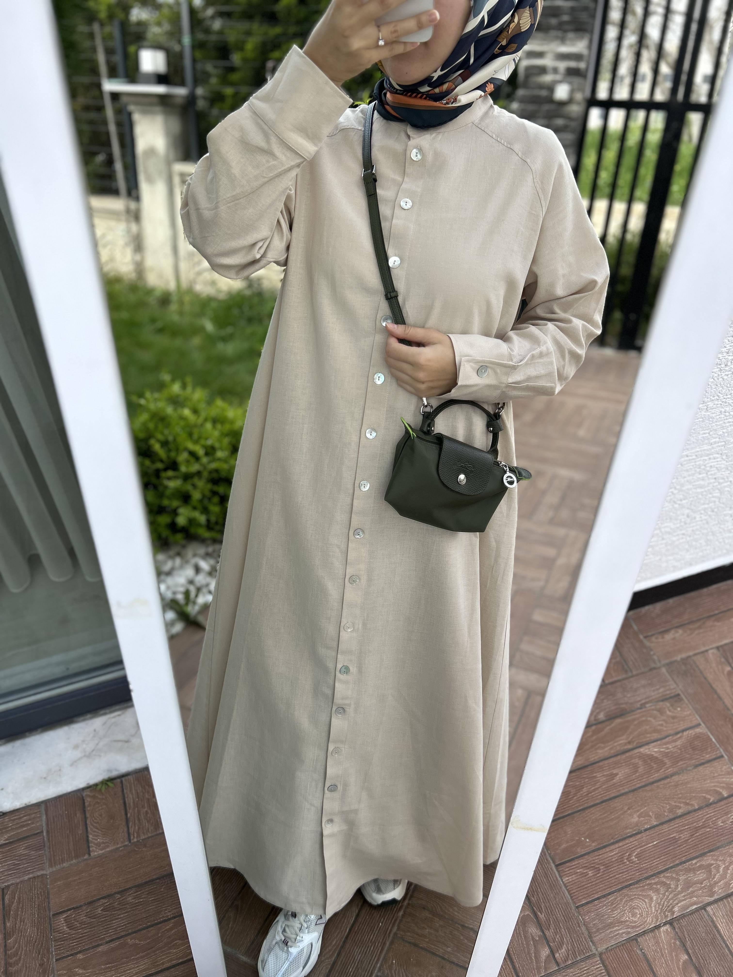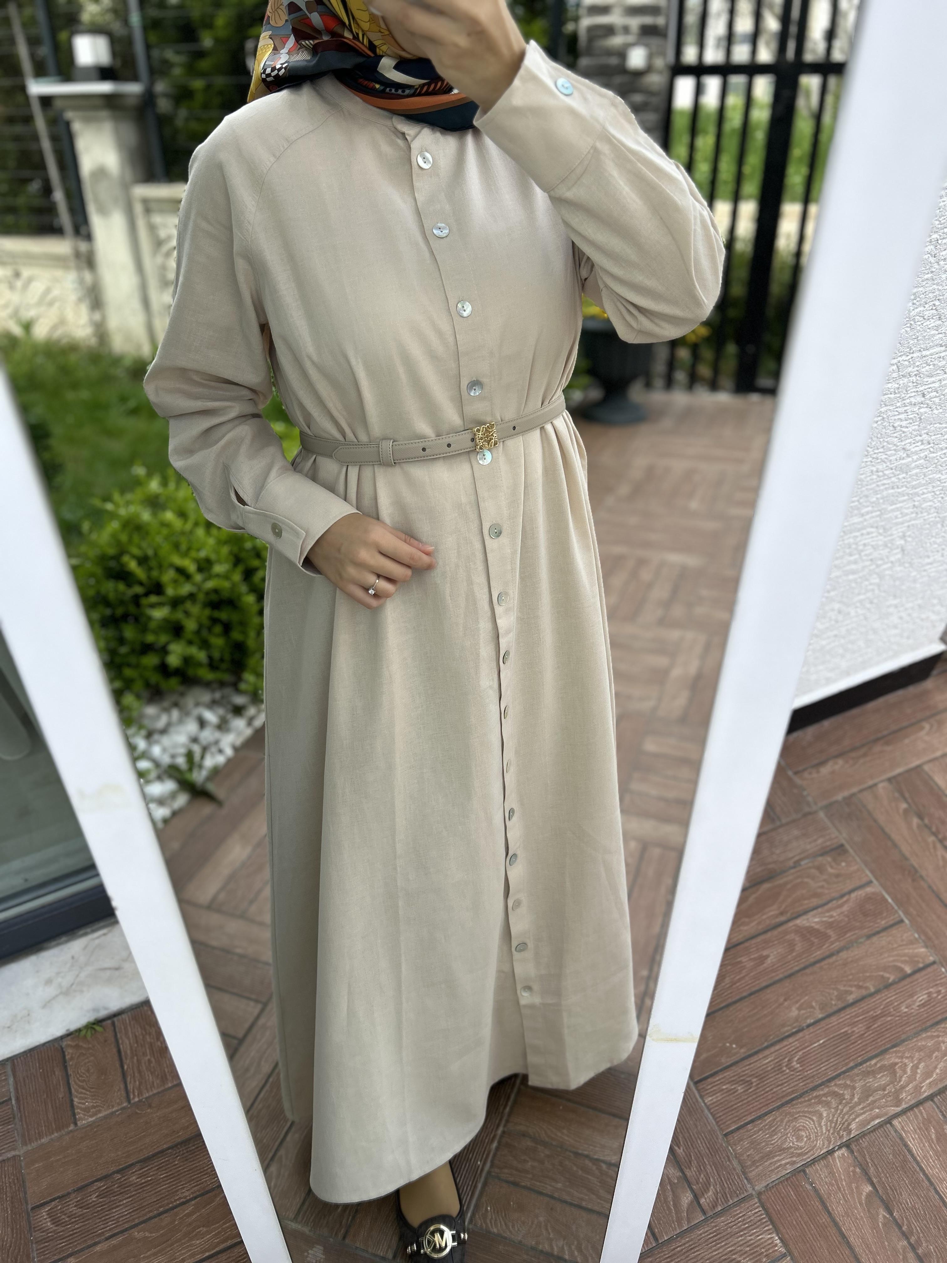 Keten Gömlek elbise krem