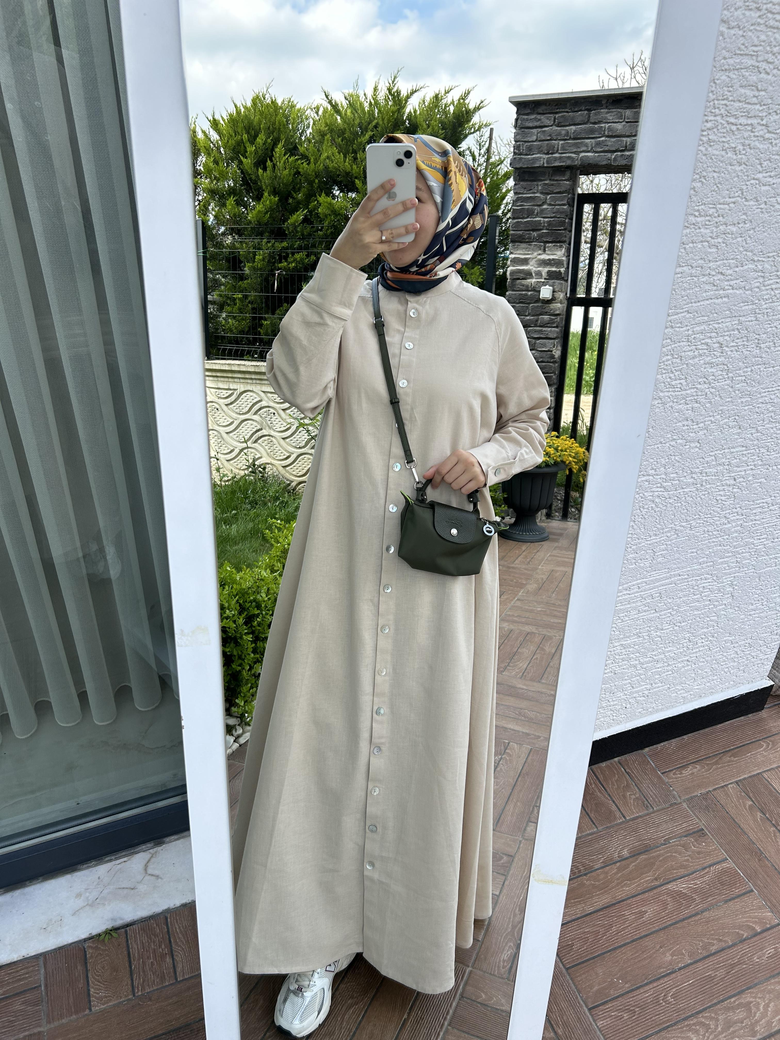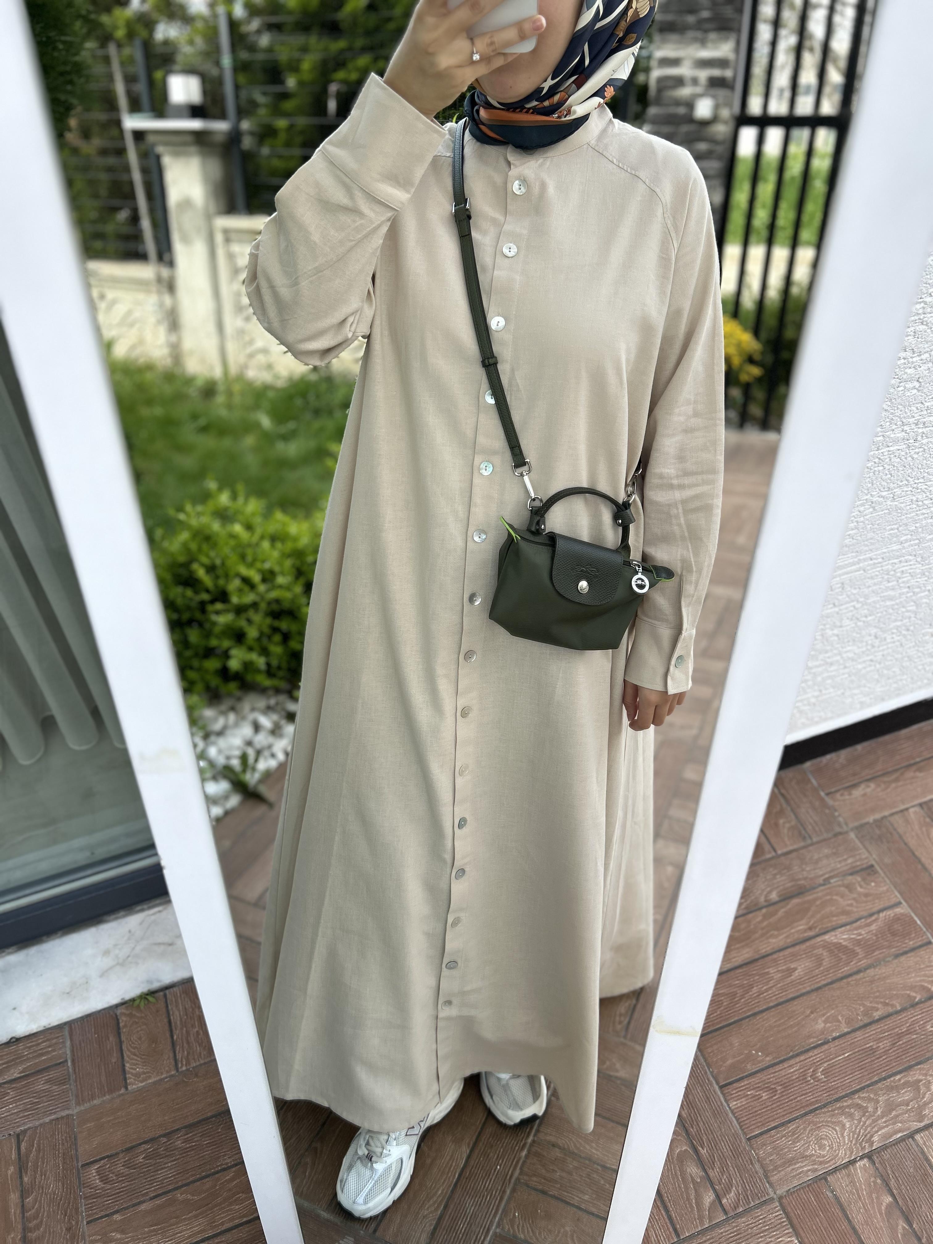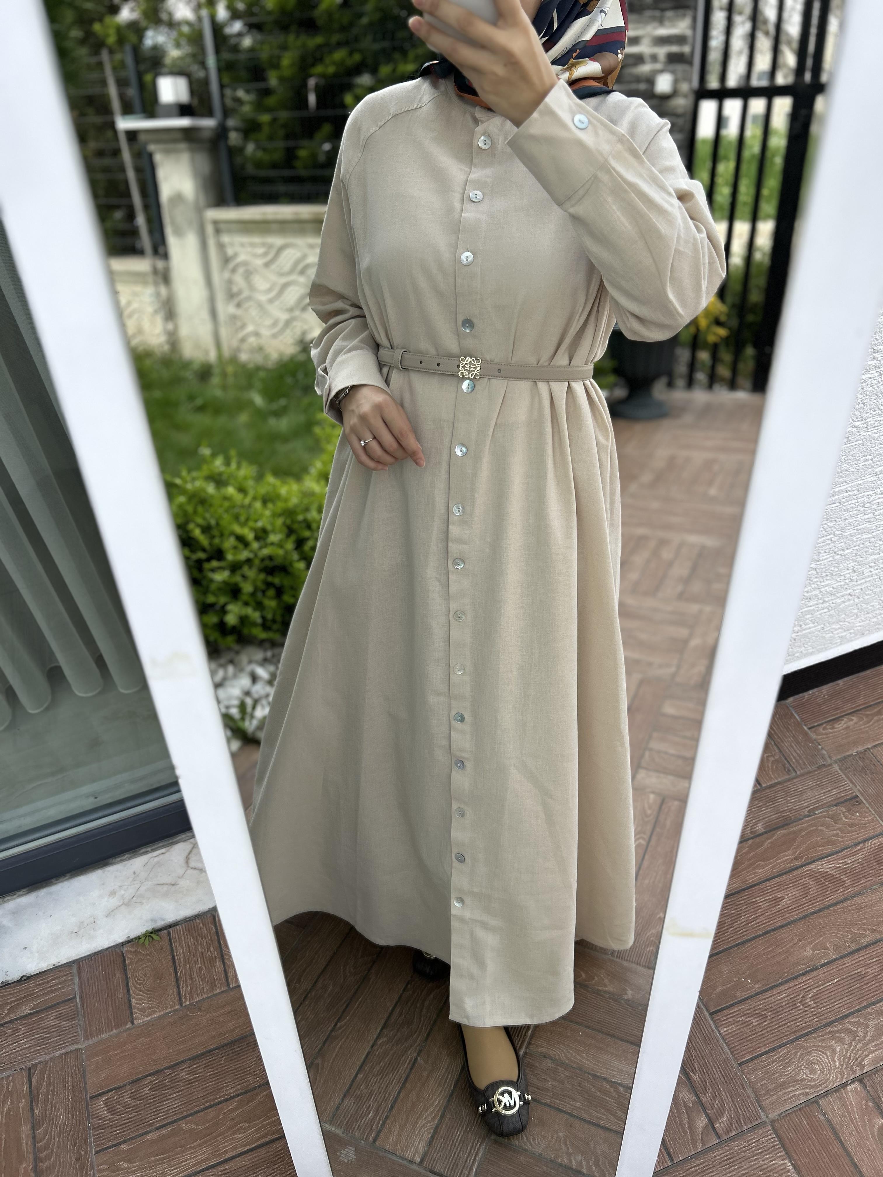 Keten Gömlek elbise krem