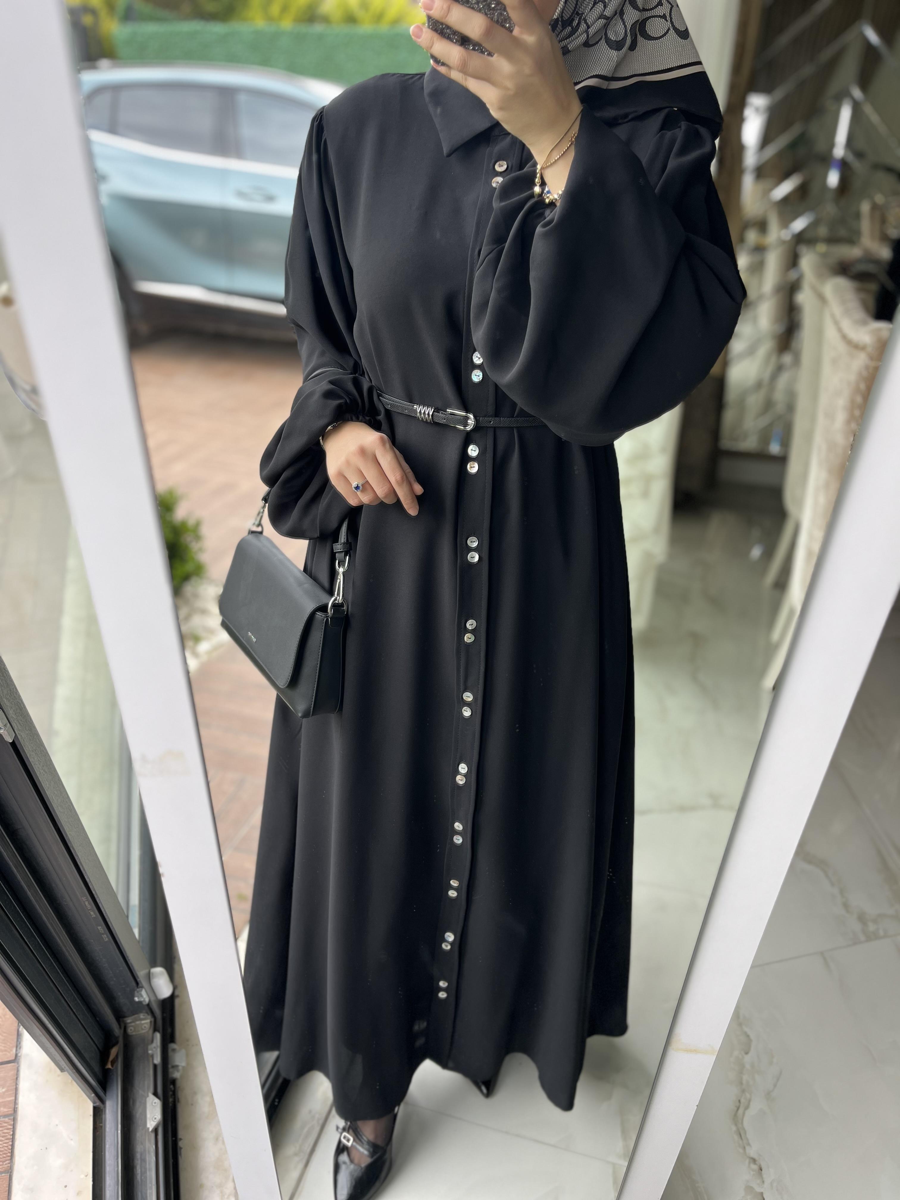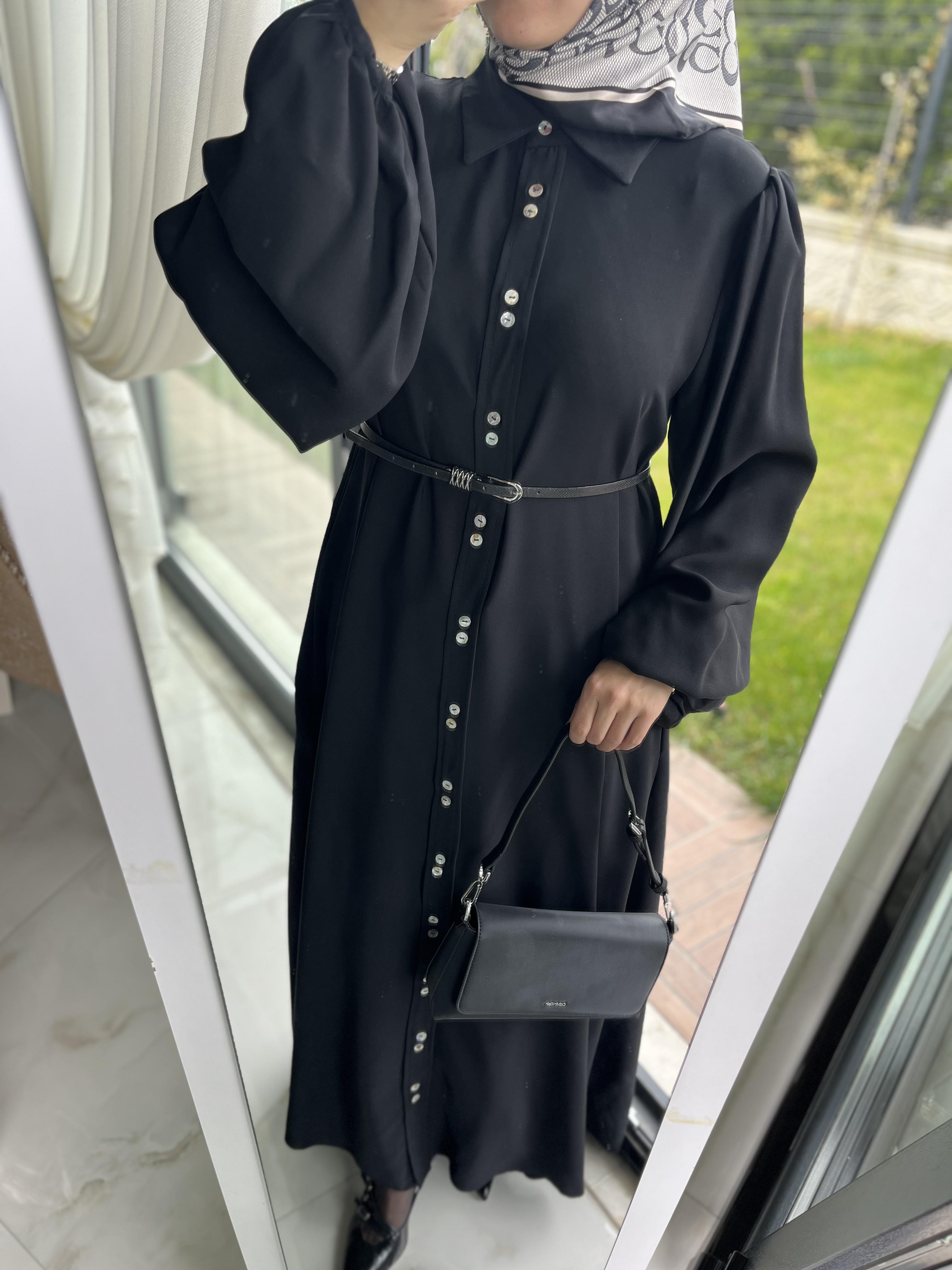 tek gömlek düğmeli astarsız cepli elbise