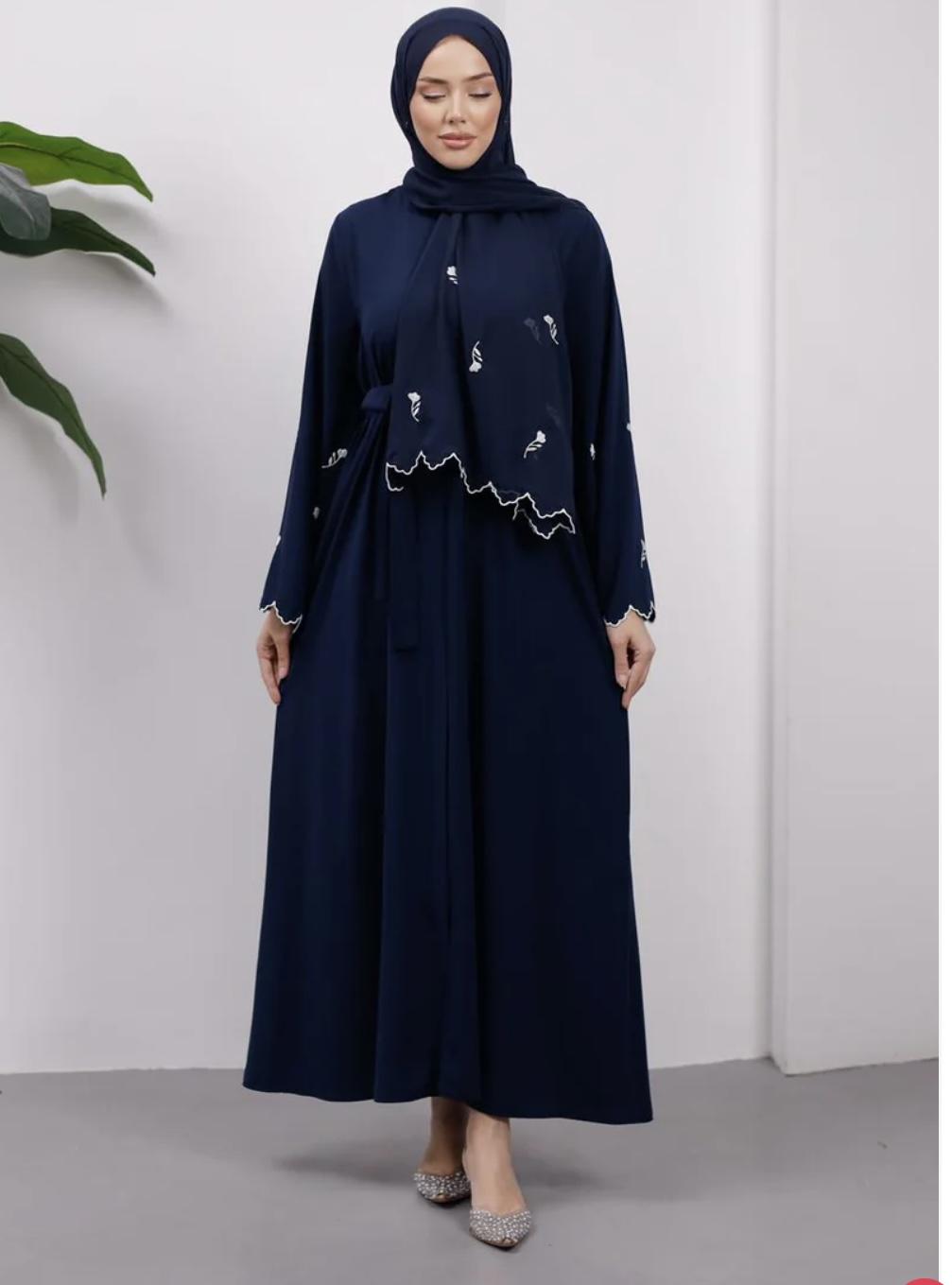 Lacivert , Nakışlı takım abaya