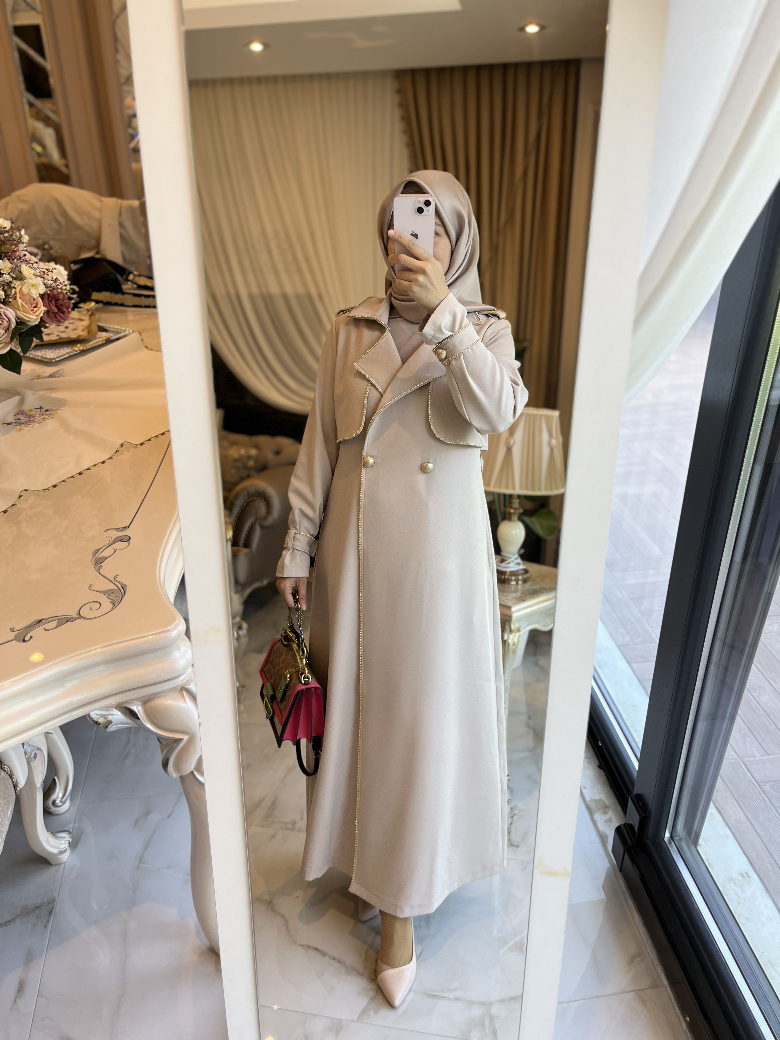 Taşlı trenç krem 2 düğmeli ( ön sipariş )