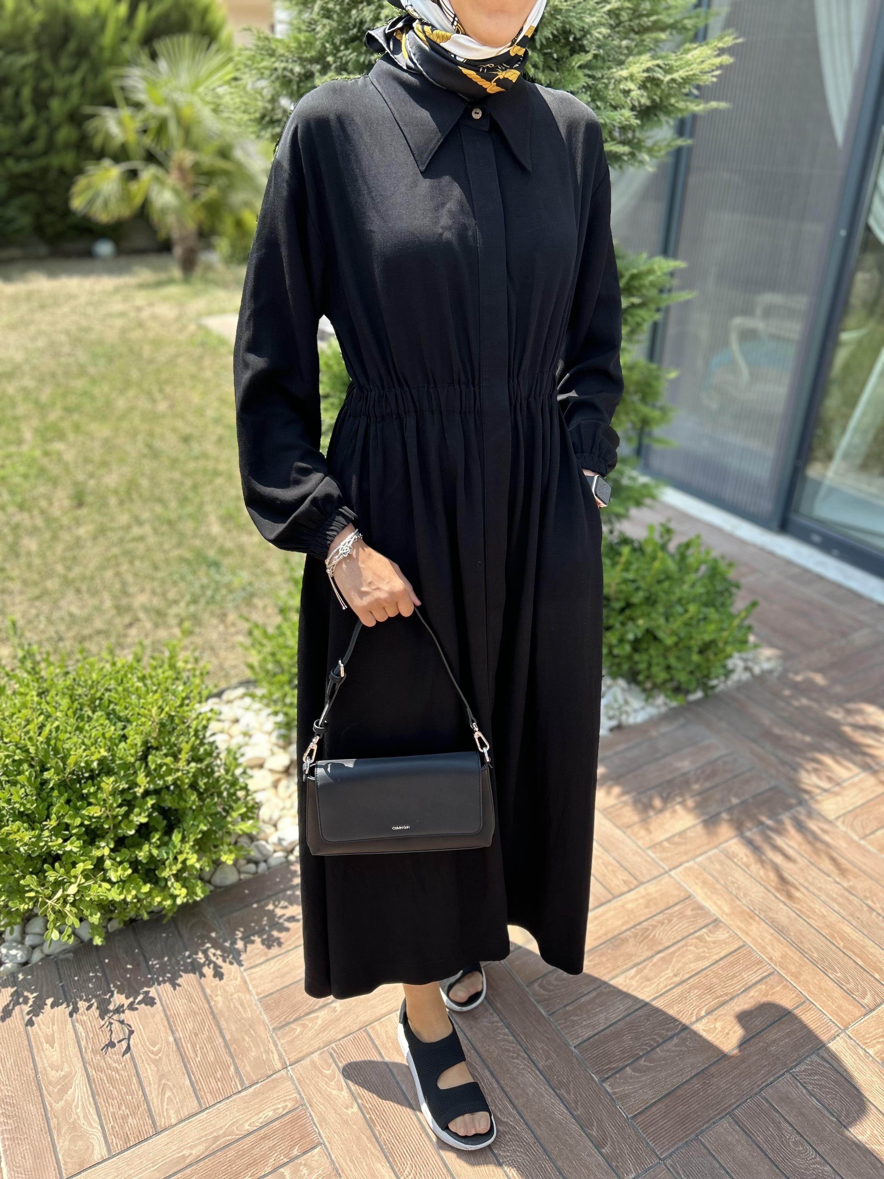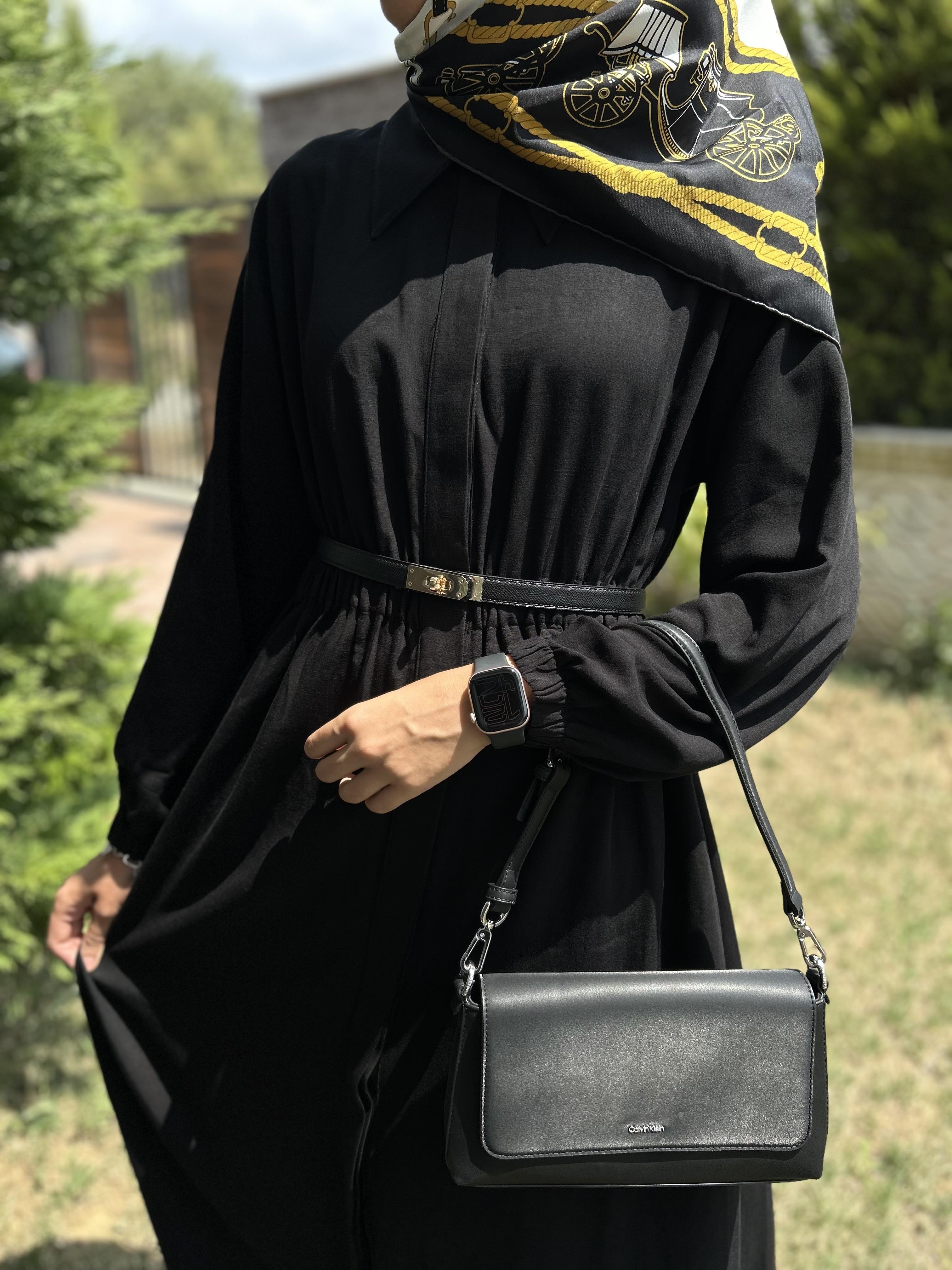Tensel keten elbise siyah