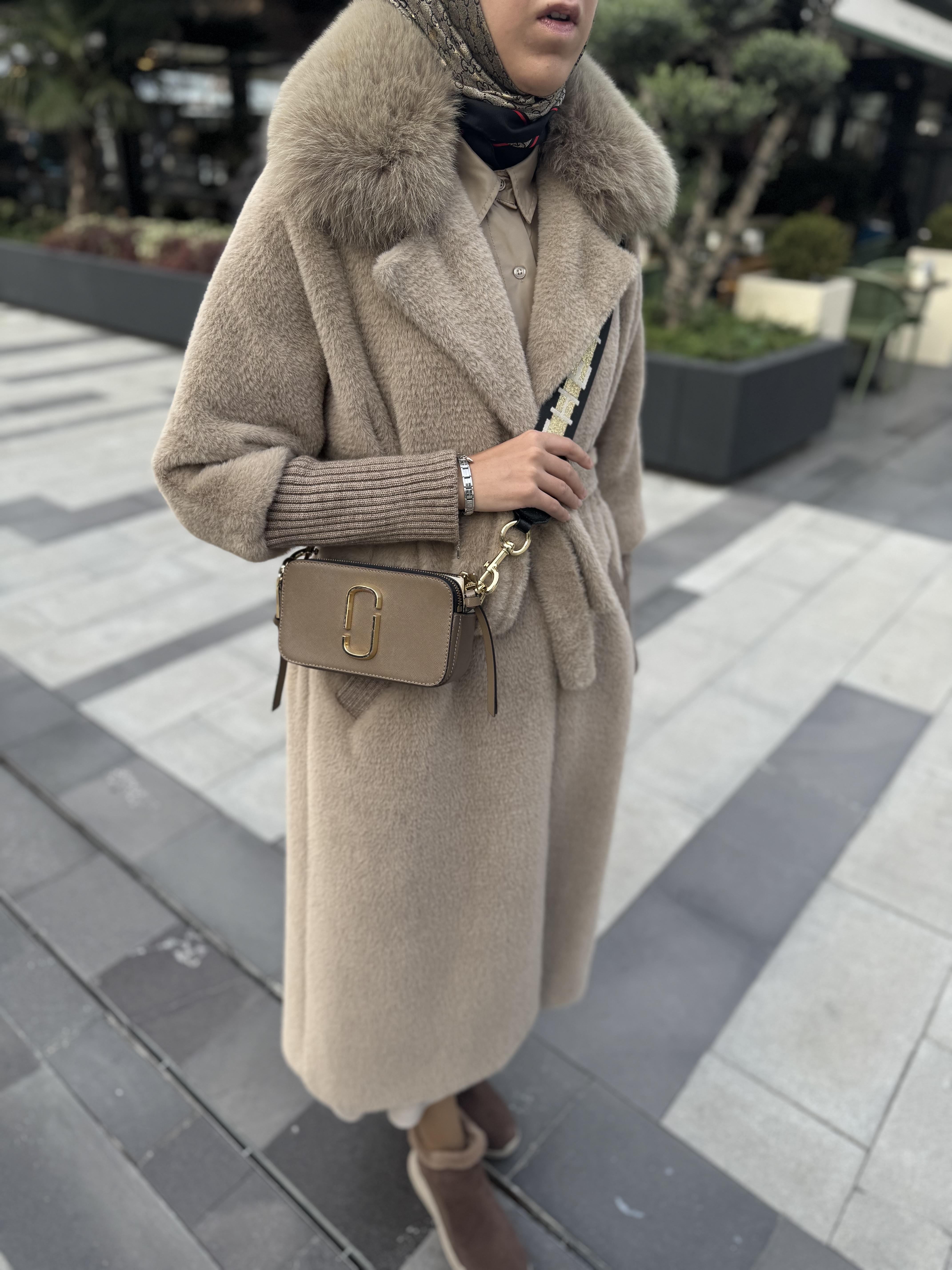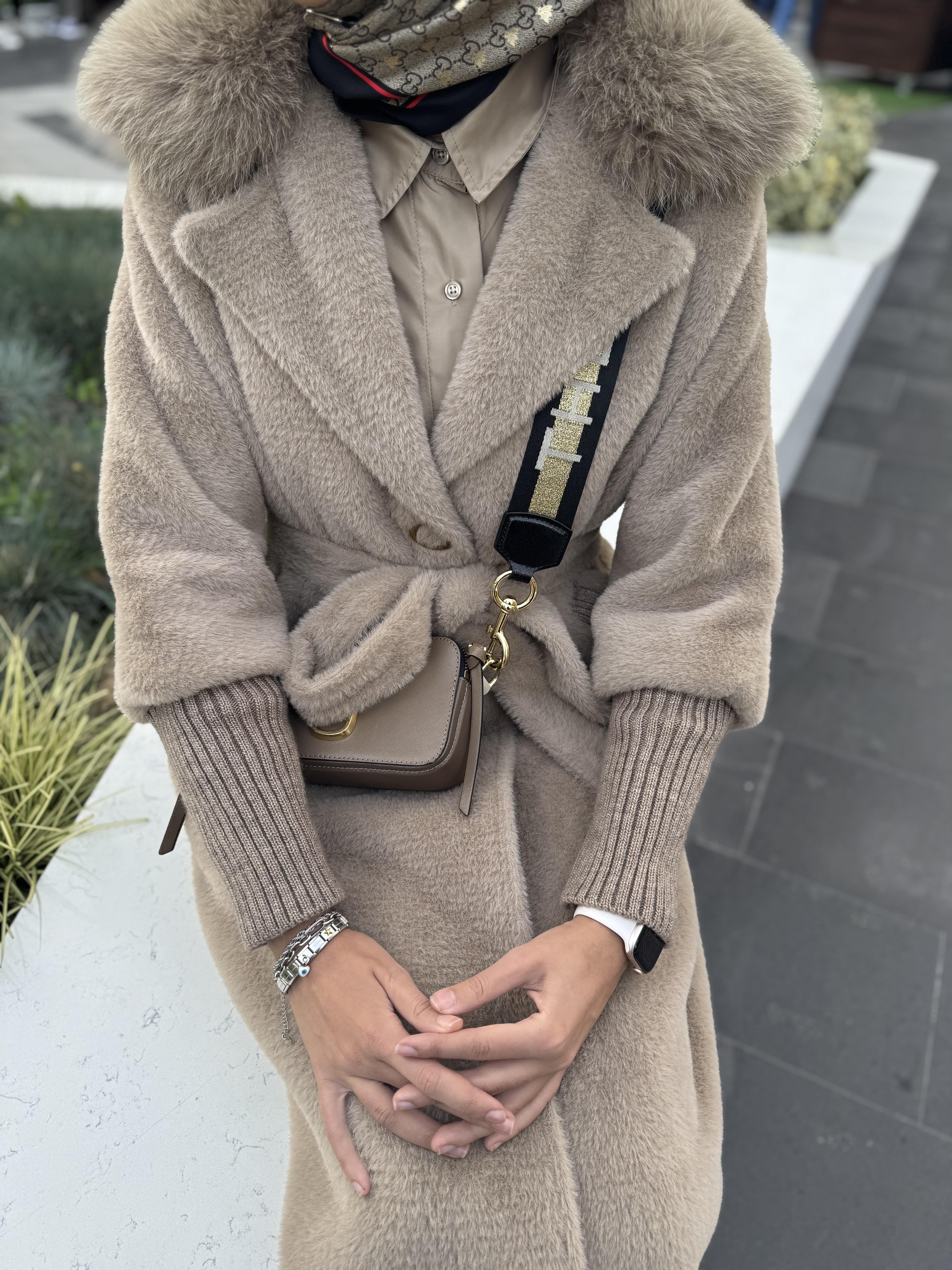 Yakası kürklü sıcacık tam boy astarlı angora kaban özel boyu ile sizlerle